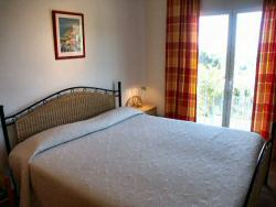 The entrance hall into the villa leads into an open plan living room, dining room and American style kitchen, separated by Tosca archways. The living room is bright and tastefully furnished, and offers satellite television and a CD player for your enjoyment. The kitchen is equipped with all 'mod-cons' including a microwave and a dishwasher. There is also a separate utility room housing a washing machine. The dining room has seating for 6 and leads into the covered naya, also furnished to a high standard, where again you can enjoy the views or watch the children playing in the pool.