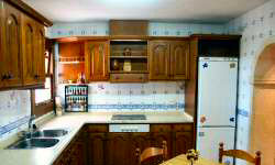 The living / dining room area is large and comfortably furnished and has a television, video and a CD player. From the living room there are patio doors leading to a large terrace that overlooks the pool and from the lounge and kitchen there is access to the garden and pool.