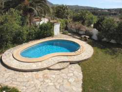 This beautiful three bedroom villa is situated in the Rafalet area of Javea. It stands in secure grounds and offers excellent inland views of the Montgo. There is off road parking for one car. The entrance to the villa takes you into the large, well furnished lounge/dining room, which is equipped with television, video and compact disc system. Off the living room is the large, modern kitchen which has a dishwasher, washing machine, microwave, etc. The three bedrooms are also accessed from the living room. There are two tastefully furnished twin bedrooms which share a bathroom, and one double bedroom with full ensuite. There is a large covered naya overlooking the extensive gardens, which are turfed and therefore ideal for children. The pool is kidney shaped and has internal lighting for those relaxed summer evenings. There is ample terrace for sunbathing. From the garden, steps lead you to the roof terrace, which has excellent views across the orange groves to the Montgo mountain.